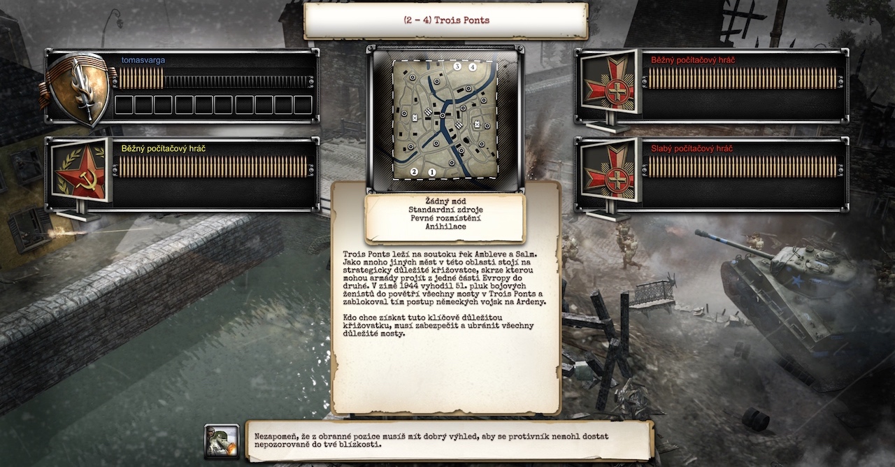 Ak vám k prvotnému osvojeniu taktík a herných možností nepostačí kampaň pre jedného hráča, neváhajte vyskúšať výcvikový tutoriál. Ten funguje vo fome krokového vysvetlenia všetkých funkcií a taktiež ako zoznam s popismi zbraní, jednotiek a doplnkových špeciálnych možností, ktoré nájdete v ponuke na ovládacom paneli. Ako sa však hovorí, človek sa učí na vlastných chybách preto po odohratí singleplayerovej kampane odporúčam skúsiť si zopár hier proti počítaču, kde objavíte dokonca oveľa viac prvkov, ako ponúkne príbeh. Okrem dejovej línie je dostupný režim hry viacerých hráčov, kde sa popasujete o nadvládu na bojisku s protivníkmi v reálnom čase. Tento mód funguje vo forme obsadzovania kontrolných, muničných a palivových bodov, ktoré vám dopĺňajú suroviny a zdroje potrebné na výstavbu opevnenia, vojenských stanov a hlavne na povolávanie nových bojových jednotiek. Ak máte skúsenosť s predchádzajúcim titulom, táto skutočnosť by vám mala byť nad slnko jasná, pretože ju tvorcovia ponechali v pôvodnej podobe.