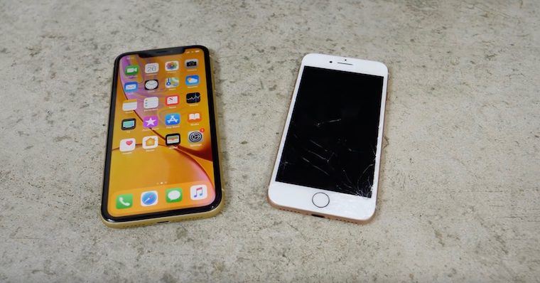 O test se postaral YouTube kanál EverythingApplePro, který proti sobě v testu postavil iPhonu XR a rok starý iPhone 8. Test se skládal z několika pádů iPhonů na betonovou podlahu z různých výšek. Přední panel iPhonu 8 praskl při volném pádu z výšky 6 stop (tedy asi 180 centimetrů), iPhone XR pád ze stejné výšky přežil. U iPhonu XR se zadní sklo rozbilo až při výšce necelých 10 stop. Přední displej pak praskl při plošném nárazu z výšky 10 stop (zhruba 3 metry). Na celý test se můžete podívat na videu umístěném pod tímhle odstavcem.