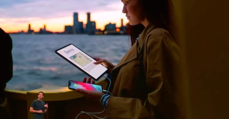 Že je připojení externích monitorů s vysokým rozlišením k iPadu Pro skrze USB-C skvělé? To bezesporu. Ještě zajímavější ale pro mnohé z nás je možnost tablet využít i jakousi powerbanku pro váš iPhone. Apple se totiž na keynote pochlubil tím, že iPadem bez problému dobijete i svůj jablečný telefon. Jediné, co je potřeba, je příslušný kabel s USB-C koncovkou na jedné straně a Lightning koncovkou na straně druhé. Pak už stačí jen oba produkty vzájemně propojit a volià, z iPadu je powerbanka.