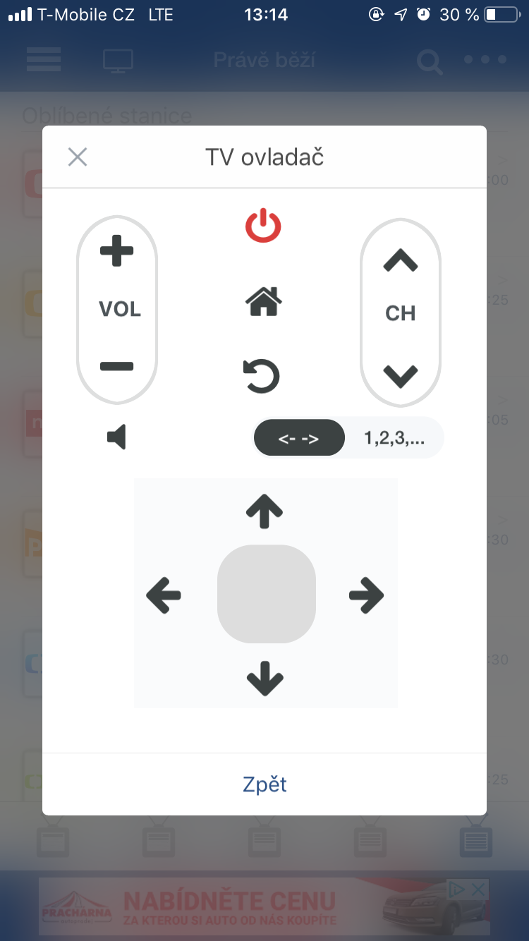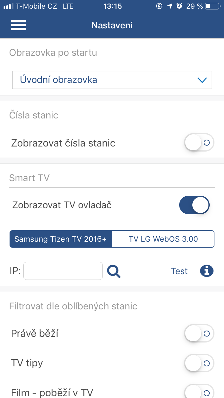 Zajímavý je také televizní ovladač. Říkáte si, jak to jako myslím? Naprosto jednoduše. V aplikaci FDb.cz se nachází ovladač, pomocí kterého můžete jednoduše přepínat stanice, měnit hlasitost, vypnout televizi či zobrazit menu. Ovladač se nachází pod ikonou televize, kterou najdete v levé horní části obrazovky. Nejen ovladač poté můžete nastavovat v kolonce Nastavení, která se nachází na samotném konci menu. Pokud už jste si tedy lehli do postele a nechce se vám zvedat pro zapomenutý ovladač, pošlouží vám ten z aplikace FDb.cz.
