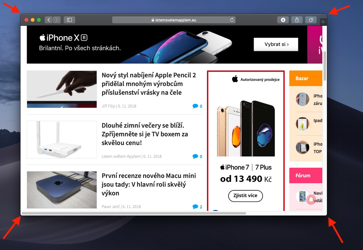 Každé okno lze v macOS jednoduše zmenšit ( a zvětšit) tak, že jej chytnete za jeden z rohů. Pokud však chcete, můžete při zmenšování oken podržet tlačítko Option. Okno poté změní své rozměry od svého středu – okno tedy zůstane svým středovým bodem tam, kde bylo i po zmenšení (zvětšení).