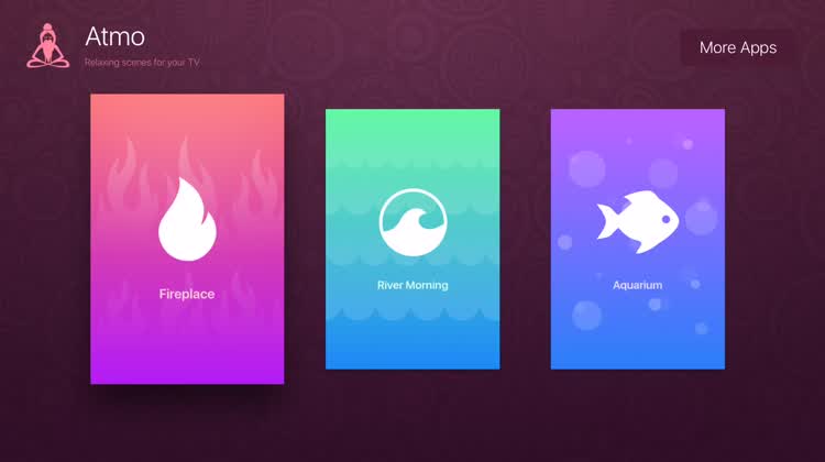 Atmo je mierne odlišná ako predošlé uvedené aplikácie. Nosným prvkom je samozrejme vizuál horiaceho a praskajúceho krbu, no okrem toho ponúkne oveľa viac. K dispozícii je tiež scenéria, vďaka ktorej premeníte svoj televízor na virtuálne akvárium alebo nádhernú scenériu s pohľadom na rieku. Ak ale dostanete náladu na niečo iné, pomocou nákupov v aplikácii sú dostupné aj ďalšie vizualizácie.