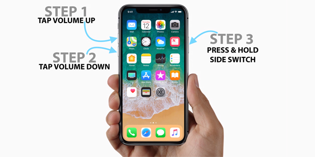 - Pusťte boční tlačítko, ale stále držte domovské tlačítko