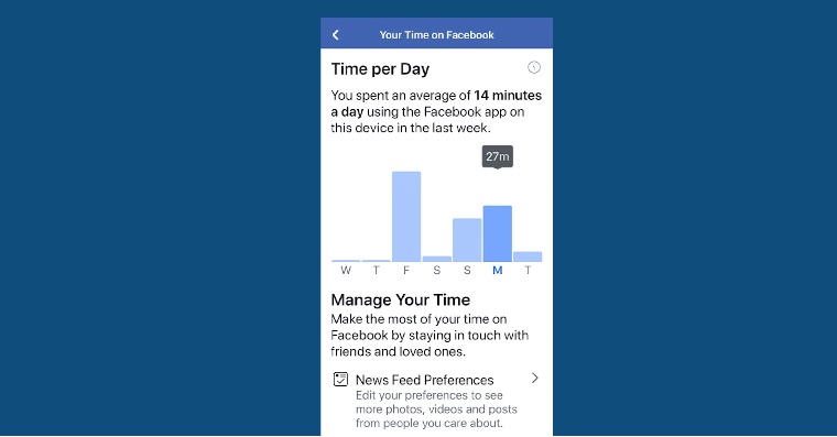 Téměř před 4 měsíci Facebook oznámil, že chce do své aplikace implementovat funkci, která by měřila čas uživatele stráveného na Facebooku. Zavedení této funkce již bylo zaznamenáno technologickým webem TechCrunch, který tak o této skutečnosti jako první informoval. Obdobnou funkci přinesl i iOS 12 se svým Časem u obrazovky, který přehledně informuje svého uživatele, jak tráví čas na svém iOS zařízení.