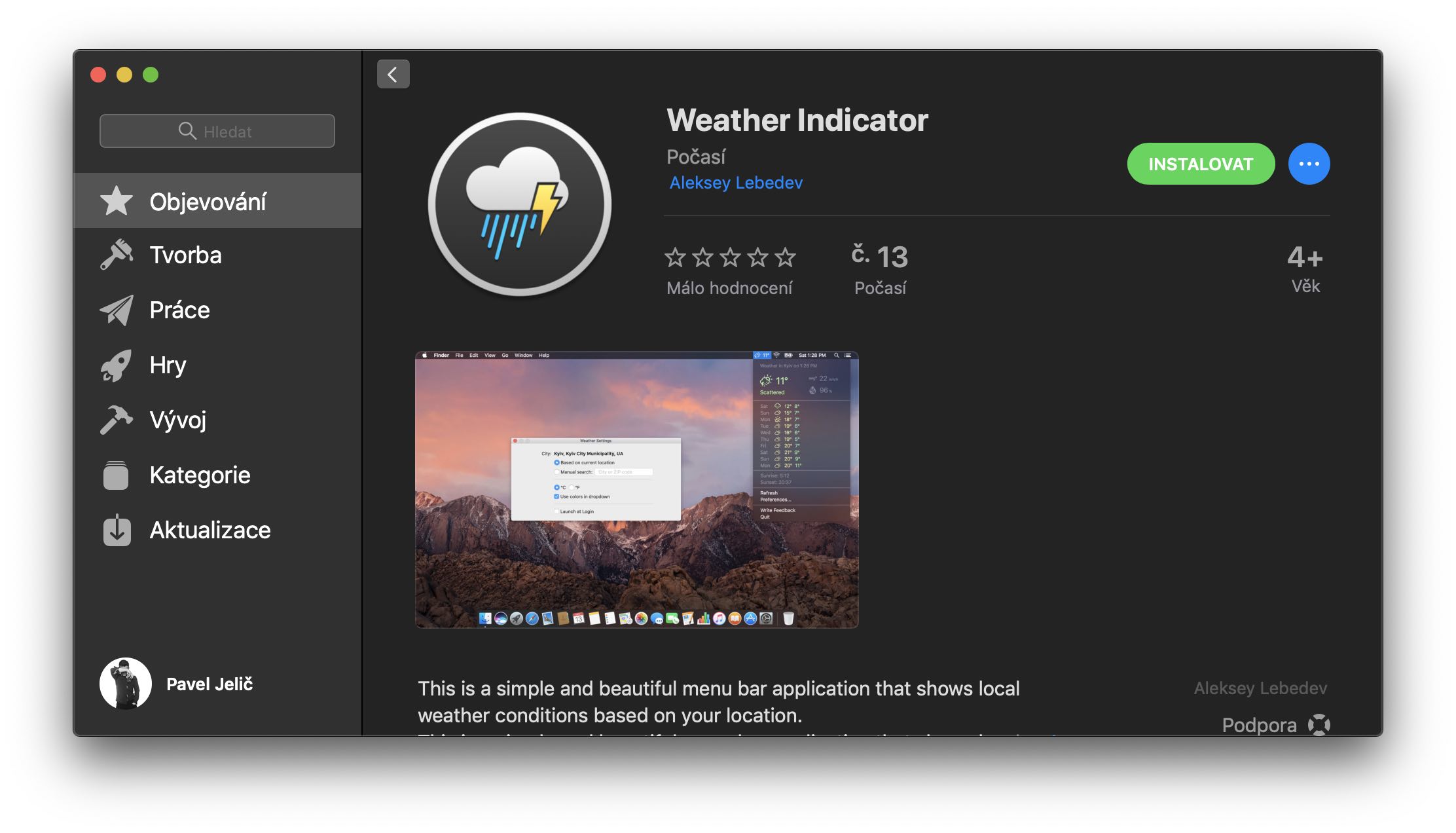 V horním stavovém řádku na vašem Macu by se měly nacházet ikony, které vám dají rychlý přístup k určitému nastavení a nebo by měly zobrazovat důležité informace. Co byste řekli na to, že by se v horní liště zobrazovala ikonka počasí? Ve výchozím nastavení tato možnost není možná, a tak musíme sáhnout po aplikaci třetí strany, která ikonu počasí zvládne do stavového řádku přidat. Po zkoumání jsem našel dvě aplikace, kdy první představuje jednoduchou předpověď počasí ve stavovém řádku. Druhá je poté o mnoho propracovanější a mimo předpovědi v ní najdete rozsáhlé informace o počasí. Pojďme se tedy společně na obě aplikace podívat.