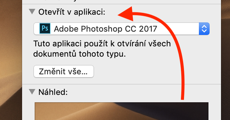 Osobně budu na mém Macu měnit, aby se výchozí program pro .PNG soubory změnil z Náhledu na Adobe Photoshop. Nejprve je tedy nutné najít .PNG obrázek, na který klikneme pravým tlačítkem. Poté z rozevíracího menu vybereme možnost Informace. Zobrazí se nové okno, ve kterém v dolní části rozklikneme kolonku Otevřít v aplikaci. Po rozevření se objeví výběrové menu, ve kterém vybereme program, pomocí kterého se má soubor otevírat – v mém případě tady Adobe Photoshop. Poté už pouze stačí kliknout na tlačítko Změnit vše…, aby došlo ke změně u všech souborů v systému.