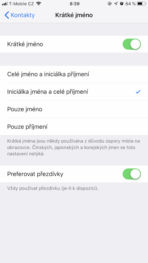 Novější verze iOS umožňují zkrátit jméno daného kontaktu namísto jeho plné verze. Způsoby zobrazení zkráceného jména si můžete navolit sami. Jak?