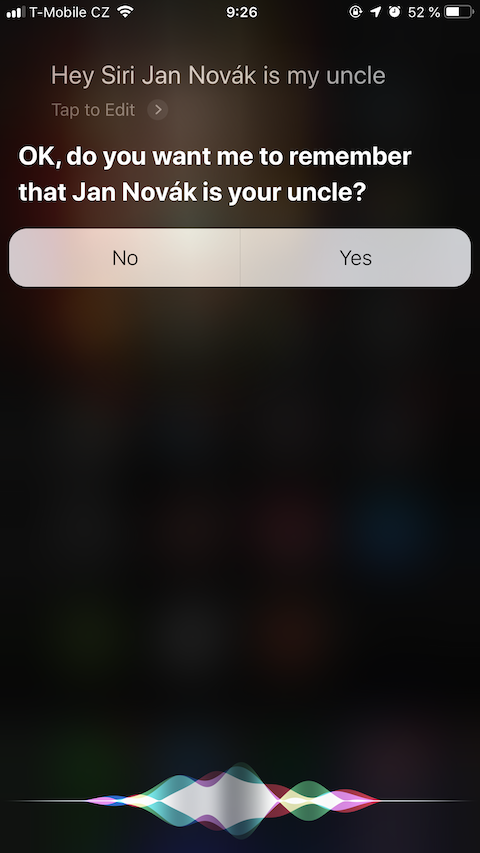 • Oznamte Siri, v jakém vztahu k vám je daný kontakt.