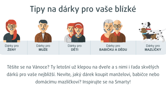 Komerční sdělení: Nakupování dárků je pro mnoho lidí vrcholně stresujícím zážitkem. Nejen, že je nutné vlézt do obchodního centra přecpaného lidmi, ale to nejtěžší přichází už s vymýšlením dárku. Co by asi mohlo potěšit vašeho partnera? Jaký dárek udělá radost puberťákovi? Co proboha koupit mamince? Na Smarty vědí moc dobře, které chytré vychytávky na vaše nejbližší platí.