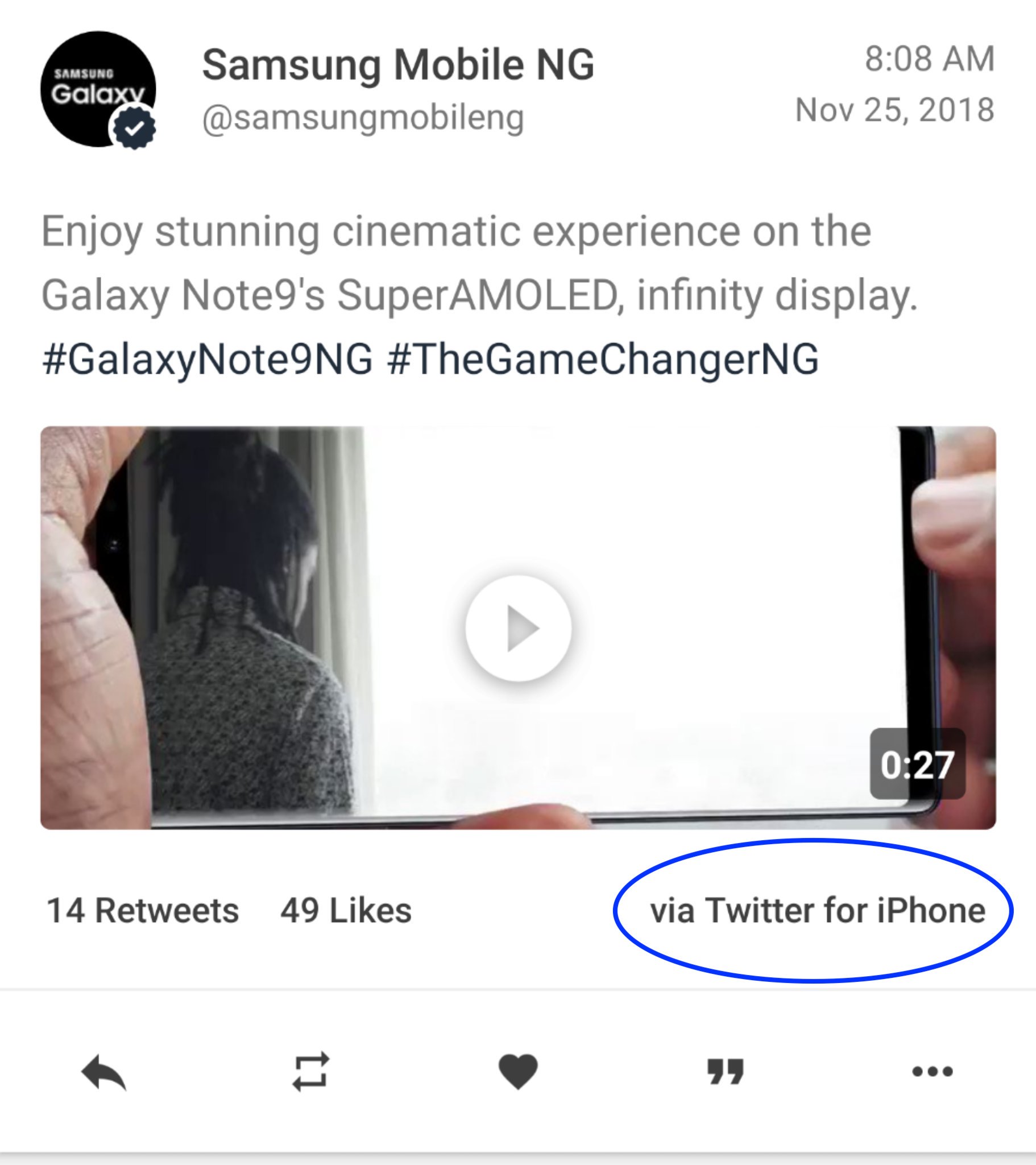 Na svých twitterových účtech se Samsung snaží poměrně často vyzdvihovat své produkty ať už skrze různá vida či reklamní slogany. Všechny své účty však Jihokorejci pod stoprocentním dohledem nemají, což se jim vymstilo u jejich účtu pro Nigérii. Ten totiž propagoval úchvatný displej nového phabletu Galaxy Note9 přes aplikaci Twitter pro iPhone. Na komičnosti celé situaci dodává i fakt, že nejlepším OLED displejem by se měl podle odborníků chlubit právě iPhone, konkrétně XS Max. Samsung na celou situaci zareagoval poměrně radikálně. Místo smazání tweetu se totiž rozhodl zrušit rovnou celý nigerijský účet. Ten tak již v tuto chvíli na Twitteru nenaleznete.