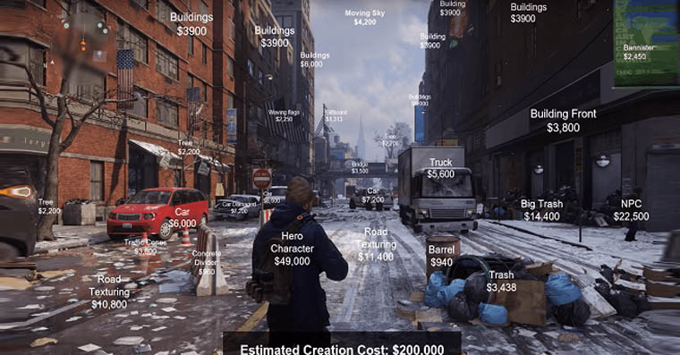 Jak můžete vidět v galerii, vytvoření hlavního hrdiny stálo zhruba 49,000 $, odpadky necelých 3,500 $ a například strom 2,200 $. Součet všeho v jedné scéně tak vyjde na přibližně 200,000 $. Samozřejmě některé objekty se poté ve hře opakují, nebo jsou jen lehce pozměněny, takže ne každá scéna vyjde na takovouto částku, přesto se v součtu jedná o ohromné množství peněz.