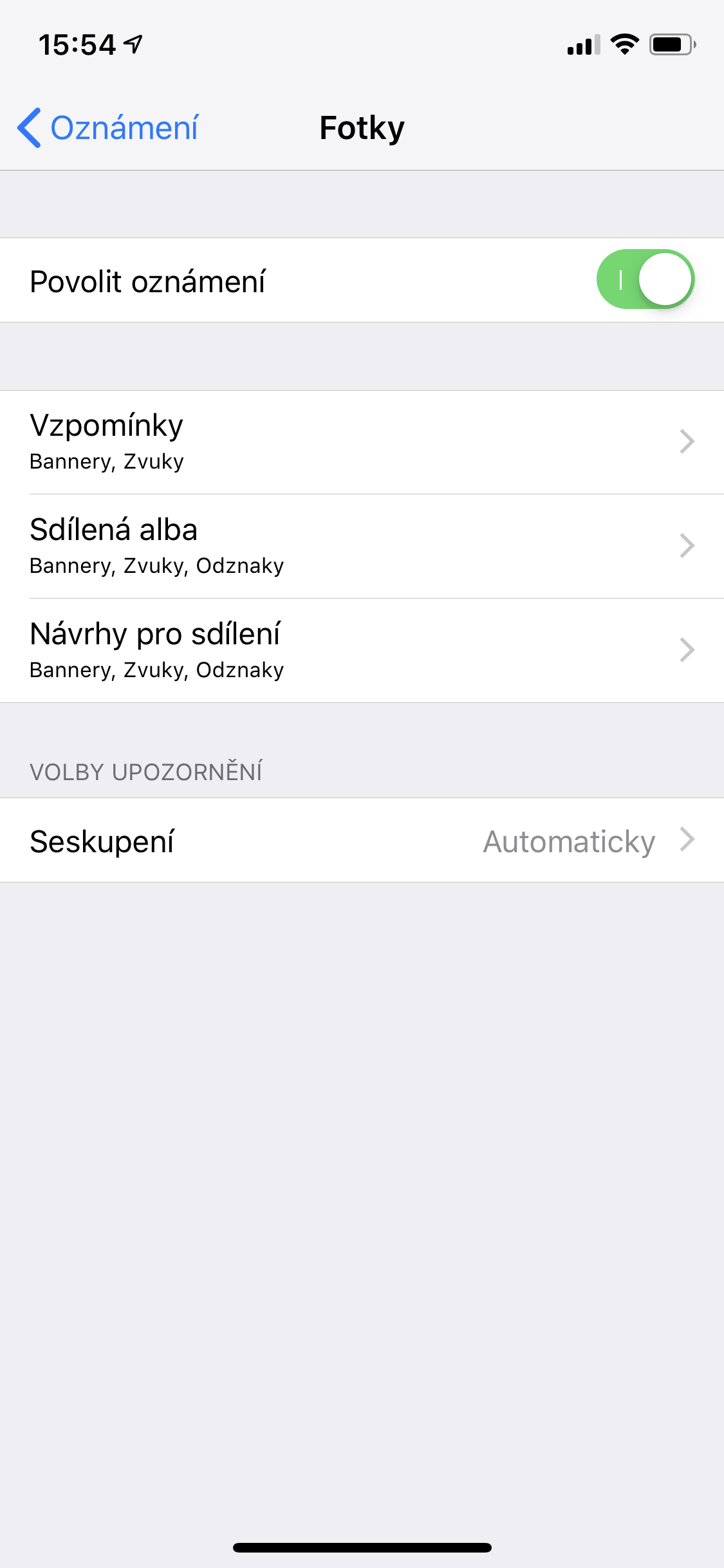 Na našem iPhonu či iPadu přejdeme do nativní aplikace Nastavení. Zde lokalizujeme kolonku Oznámení a rozevřeme ji. V seznamu aplikací nyní najdeme aplikaci Fotky a rozklikneme ji. Zde už pouze stačí otevřít možnost Vzpomínky a pomocí switche deaktivovat možnost Povolit oznámení. V případě, že chcete pro aplikaci Fotky vypnout všechna upozornění, stačí se vrátit o krok zpět a pomocí switche deaktivovat stejnojmennou možnost Povolit oznámení.