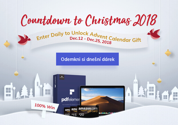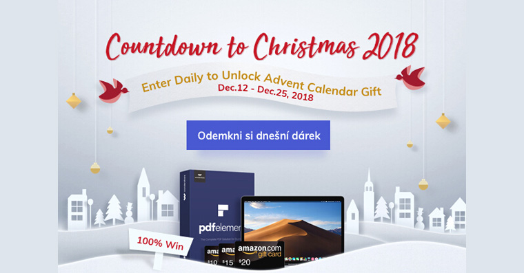 Jak už jsem v úvodu zmínil, tak si pro vás PDFelement připravil speciální akci, která funguje na bázi adventního kalendáře. Na speciální stránce si stačí každý den vyzvednout odměnu. Celý systém funguje tak, že máte každý den 100% možnost něco vyhrát. Ve hře jsou různé slevy na programy, dárkové karty na Amazon a hlavní cenou je poté MacBook Air. Pokud byste si chtěli adventní kalendář zobrazit, tak neexistuje nic jednoduššího, než kliknout na tento odkaz. Akce běží od 12. prosince až do 25. prosince, a proto tuto stránku rozhodně nezapomeňte navštívit každý den pro vybrání odměny.