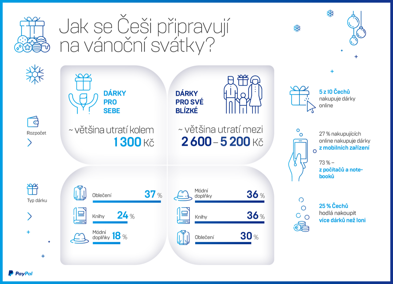 „Více než polovina Čechů (56 %) v současnosti plánuje, že během předvánočního období letos provede některé nákupy v zahraničí. Mezi hlavní důvody patří nižší ceny a možnost najít něco speciálního, bez shonu a tlačenic,“poznamenal Marcin Glogowski, generální ředitel společnosti PayPal pro střední a východní Evropu. „V nákupech ze zahraničí ale Čechům brání určité obavy, například že se zboží bude lišit od toho, co očekávají (44 %), že bude obtížné dárky vrátit nebo vyměnit (44 %) nebo že produkt případně vůbec nedorazí (39 %). Jsem rád, že s tím můžeme pomoci, zejména v předvánočním období, protože společnost PayPal nabízí funkce, jako je program Ochrana kupujícího nebo Proplacení nákladů na vrácení zboží.”