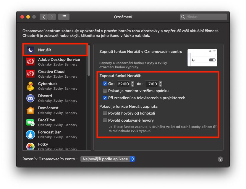 Režim Nerušit se hodí pro noční hodiny, kdy jednoduše nechcete, aby vás někdo obtěžoval a zároveň nestojíte o to, aby vám chodily notifikace. Pro nastavení režimu Nerušit stačí přejít do Předvoleb systému a v okně rozkliknout záložku Oznámení. Zde se v levém menu přesuneme do Nerušit a už pouze navolíme, jakým způsobem chceme režim Nerušit aktivovat.
