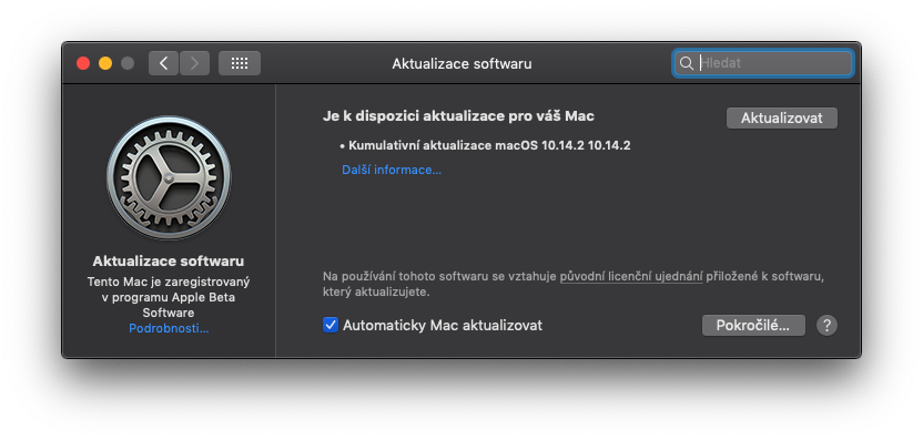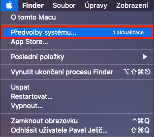 Hned po rozbalení a zapnutí, ještě před tím, než se do všeho pustíme, tak se ujistěte, že máte nejnovější verzi operačního systému macOS. V případě, že vám přišel Mac ještě se starším operačním systémem macOS High Sierra, tak jeho aktualizaci na macOS Mojave provedete v App Storu, které je na každém Macu a MacBooku předinstalovaný. V macOS Mojave jsou už aktualizace přesunuty do Předvoleb systému. Pro zkontrolování aktualizace tedy stačí v levém horním rohu rozkliknout Apple logo a z rozevíracího menu vybrat možnost Předvolby systému… Zde už poté stačí rozkliknout ikonku Aktualizace softwaru a zkontrolovat, zda-li máte nejnovější verzi macOS.