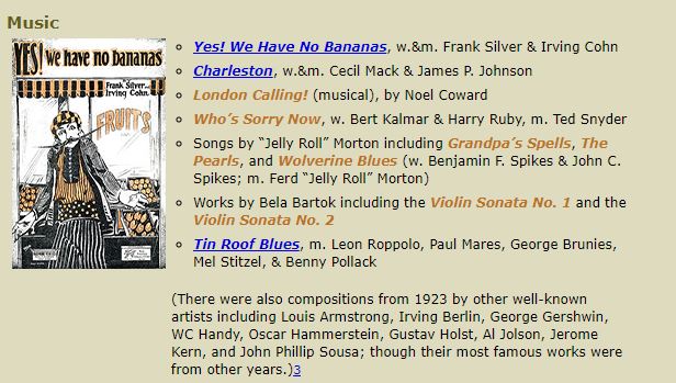 1.1. 2019 se stalo mnoho americký filmů a literárních a hudebních děl z roku 1923 volným dílem a nejsou tedy chráněna autorskými právy. Stalo se tak poprvé po více než 20 letech. Mělo se tak stát už v roce 1999 uplynutím 75 let, na které se autorské právo vztahuje, avšak v roce 1998 americký kongres tento proces pozastavil a prodloužil dobu, po kterou na díla vytvořená mezi roky 1923 a 1977 mají autorské právo na 95 let.