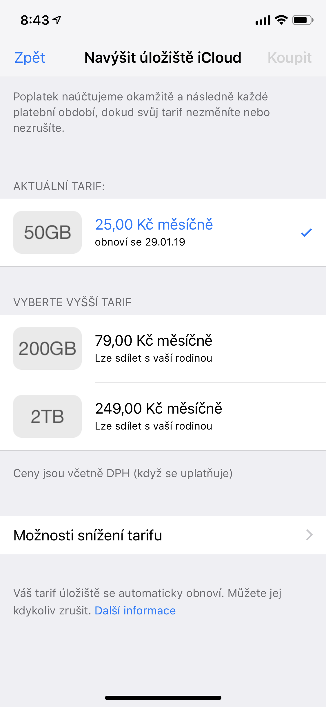 Mezi služby patří i iCloud. Takto jednoduše jej můžete navýšit: