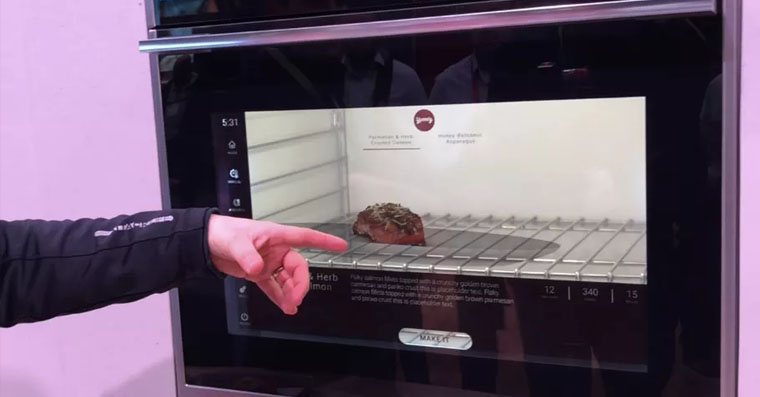 To vše díky průhlednému displeji s úhlopříčkou 27 palců, který je umístěn ve dvířkách. Na displeji se mohou zobrazit recepty, potřebné ingredience a právě i zobrazení, kam máte vše umístit – například losos patří spíše do vrchní části trouby, zatímco dolů umístíte chřest, čímž docílíte toho, že obě potraviny budou připravené ve stejný čas.