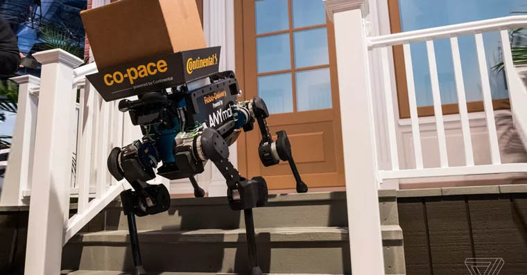 Doručování zásilek pomocí létajících dronů už se řešilo před několika lety, ale letošní nápad z CESu na to jde trochu jinak. Společnost Continental, kterou známe coby výrobce pneumatik, totiž představila robotického psa určeného právě k doručování zásilek. Robot si poradí i se schody, jak můžete vidět na přiloženém videu a dokonce zazvoní na zvonek. A pošťáci budou bez práce.