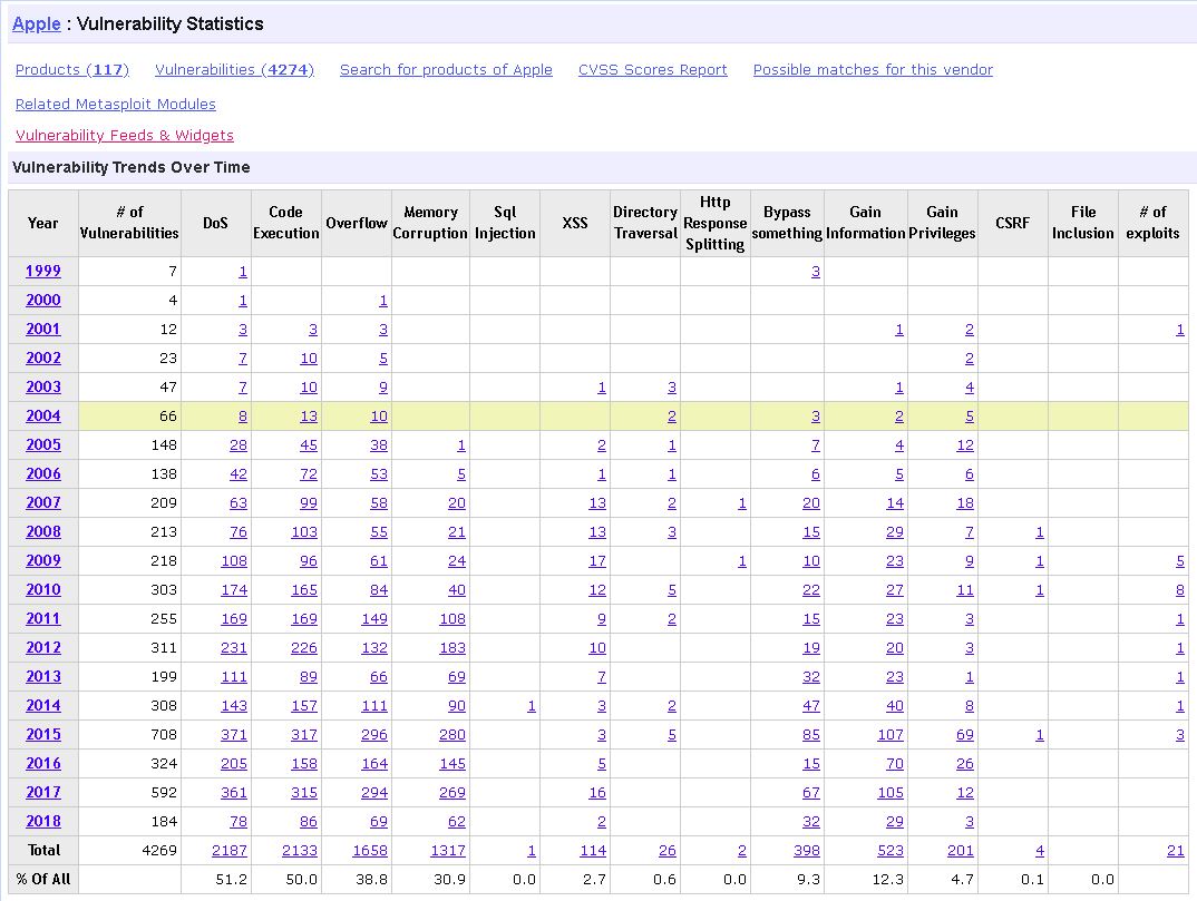 Bezpečnost firem a jejich služeb je v dnešní online době zcela zásadní a důležitá. Na kvalitě svého zabezpečení si mnoho společností zakládá svou reputaci, Apple nevyjímaje. Americká společnost MITRE Corporation už od roku 1999 vytváří databázi zranitelnosti s názvem Common Vulnerabilities and Exposures (CVE) a jsou do ní zapisovány problémy nejen různých softwarů, ale také operačních systémů.