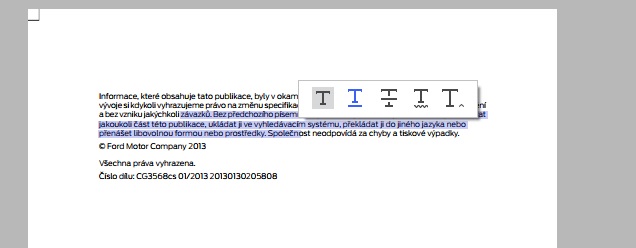 V PDFelementu jsou samozřejmě k dispozici možnosti, pomocí kterých si můžete upravit text k obrazu svému. Možnosti jsou zde prakticky stejné, jako v případě Náhledu, a proto se nimi nechci zbytečně zaobírat. Zmíním jen, že úpravu textu můžete v PDFelementu provést pomocí horního menu, které se vzhledem a rozpoložení podobá kancelářskému baličku Microsoft Office.