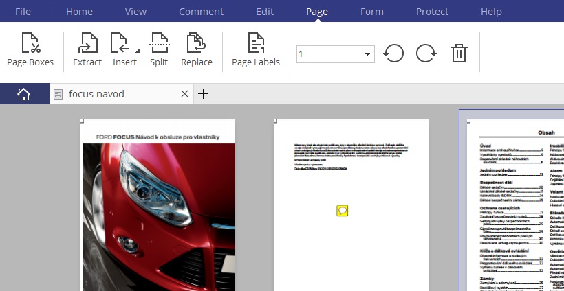 Na závěr zmíním, že je možné v PDFelementu PDF dokument exportovat do mnoha různých formátů. Nabízí se například Word, Excel, PowerPoint, Image, ePub, Text, Pages, HTML a RTF. Před samotným uložením si samozřejmě můžete změnit pořadí stránek, a to v záložce Page.