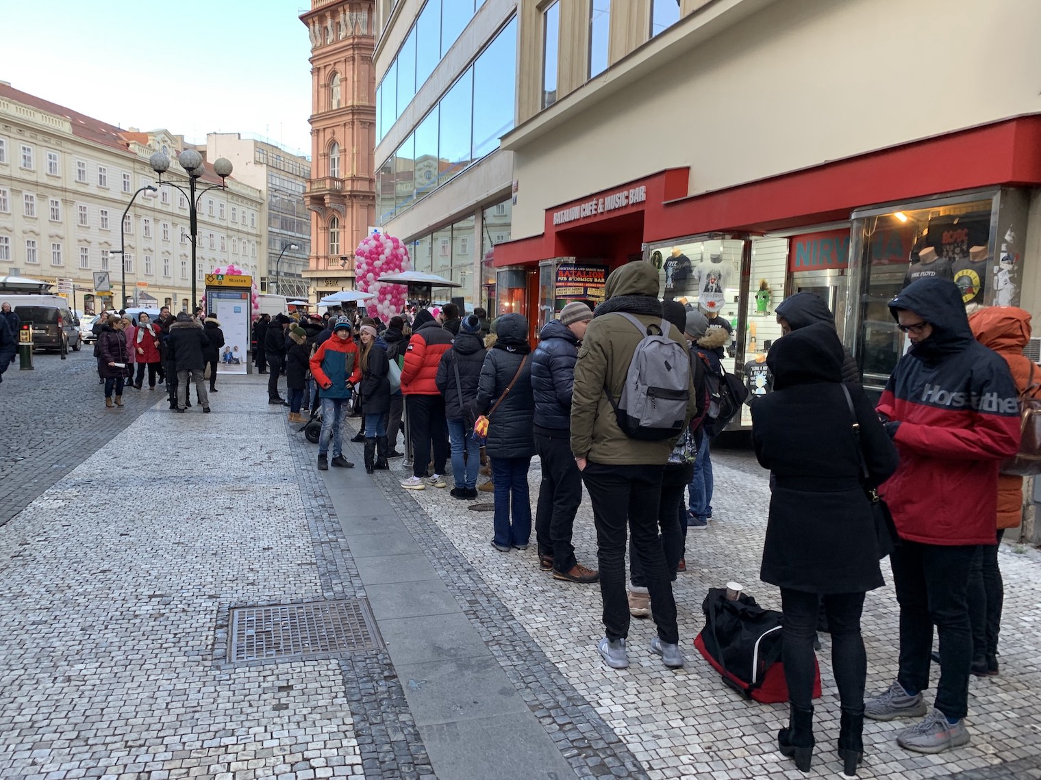 S blížící se 10. hodinou se zástup návštěvníků zvětšoval a na jeho konec byste od dveří obchodu dohlédli jen velmi těžko. Čekání zpříjemňovaly všem lidem sličné hostesky, které rozdávaly vouchery na jeden horký nápoj zdarma a se zákazníky vyplňovaly dotazníky, které šly později do slosování o lístky na koncert Eda Sheerena. Na ten se díky iWantu dostane celkem 6 lidí – vylosování totiž byly tři výherci, kteří obdrželi po dvou lístcích. Co se týče uplatnění výše zmíněných voucherů, to bylo možné u ledového baru nabízejícího horké nápoje, mezi kterými nechyběla horká hruška, jablko, grog nebo vanilka. Zákazníci si tak rozhodně na špatný servis stěžovat nemohli.