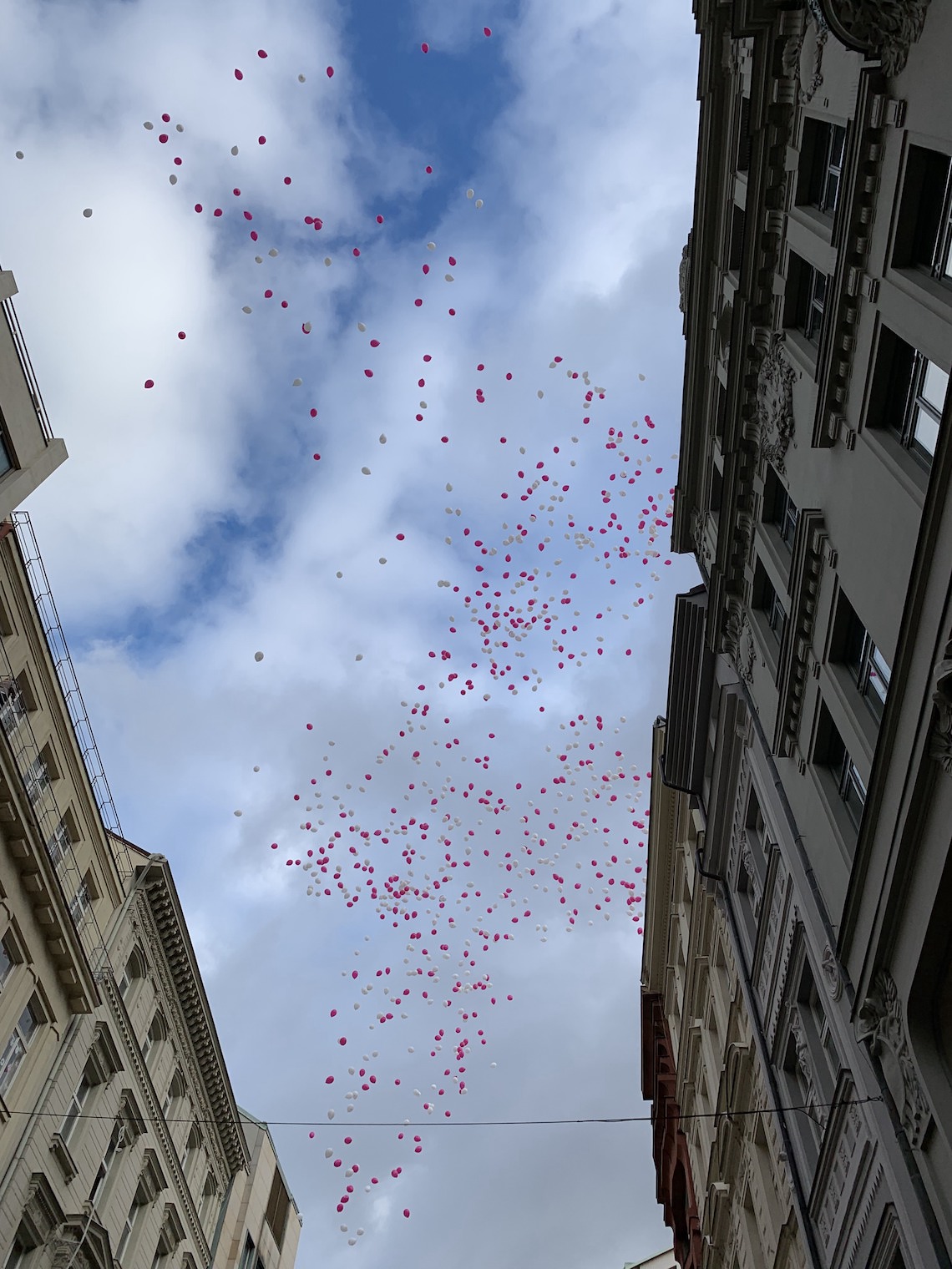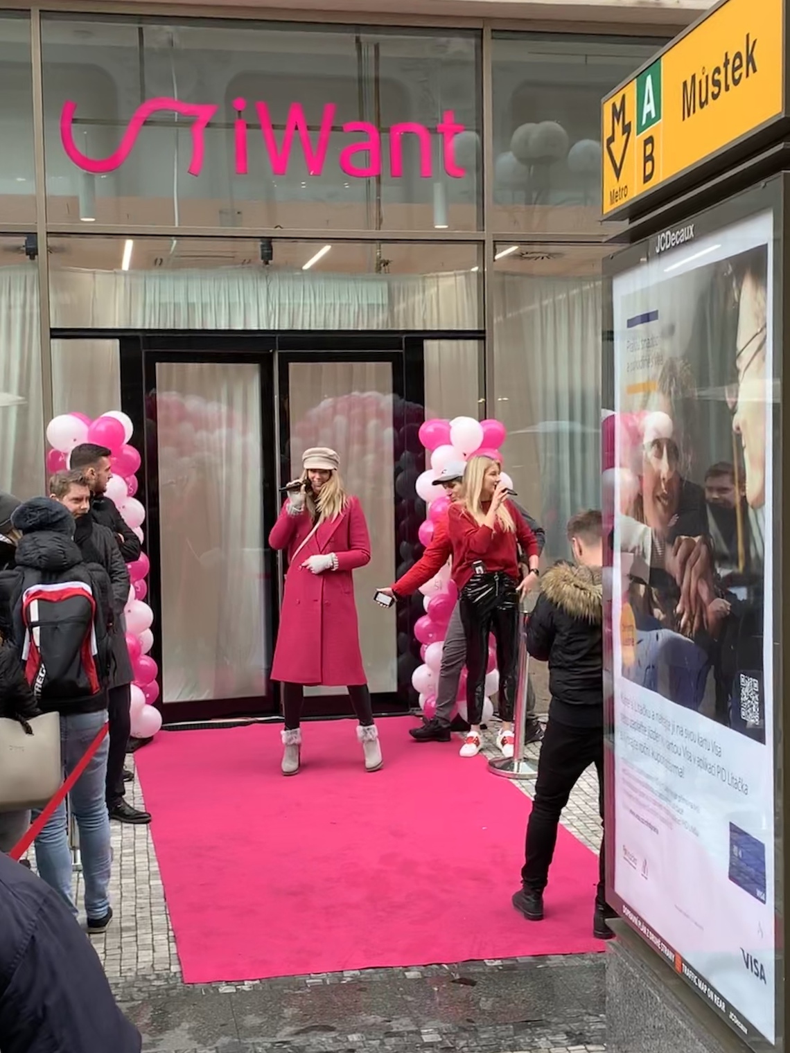V 10:00 brány prodejny po odpočtu Nikol a Jitky slavnostně otevřely. Zákazníci si mohli užít pohled na spoustu růžových balónků vznášejících se vzhůru k nebesům či si mohli vychutnat slavnostní pocit při procházení se po magentovém koberci. Pokud jste se pak dostali do prodejny mezi prvními 50 zákazníky, iWant vám k nákupu přibalil malý dárek.
