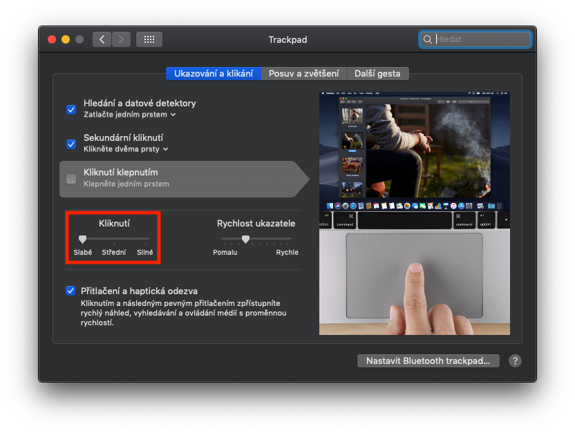 Osobně funkci Tichý Trackpad, respektive slabou sílu kliknutí, používám již velice dlouho a vyhovuje mi o mnoho více, než klasická, střední cesta, která je nastavená ve výchozím nastavení. Pokud vlastníte MacBook Pro s Force Touch Trackpadem, tak si naopak také můžete zvolit větší sílu kliknutí. V tomto případě bude haptická odezva výraznější, ale také zároveň hlasitější.