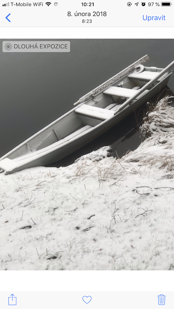 Barvu sněhu na výsledných snímcích může ovlivnit i počasí. Pokud sníh působí šedě, protože bylo zrovna zataženo, můžete si v úpravách pohrát se sytostí barvy nebo zvolit vhodný filtr. Základní nabídku filtrů má i aplikace Fotoaparát – stačí klepnout na Upravit a v dolní liště klepnout na symbol tří spojených kroužků. Pokud vám aplikace Fotoaparát nestačí, můžete si stáhnout některou z iOS aplikací pro úpravu fotografií.