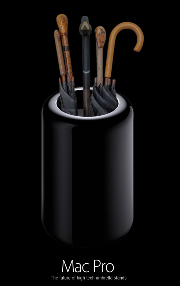 Nynější podobu Macu Pro zná snad každý fanoušek počítačů a to nikoliv díky výkonu, ale netradičnímu designu. Apple totiž vsadil v roce 2013 na válcovité tělo, které mnozí přirovnávali a vlastně i stále přirovnávají k popelníkům či popelnicím. Netradiční tvar těla však není to jediné, nad čím se můžeme ve spojitosti s tímto strojem pousmát.