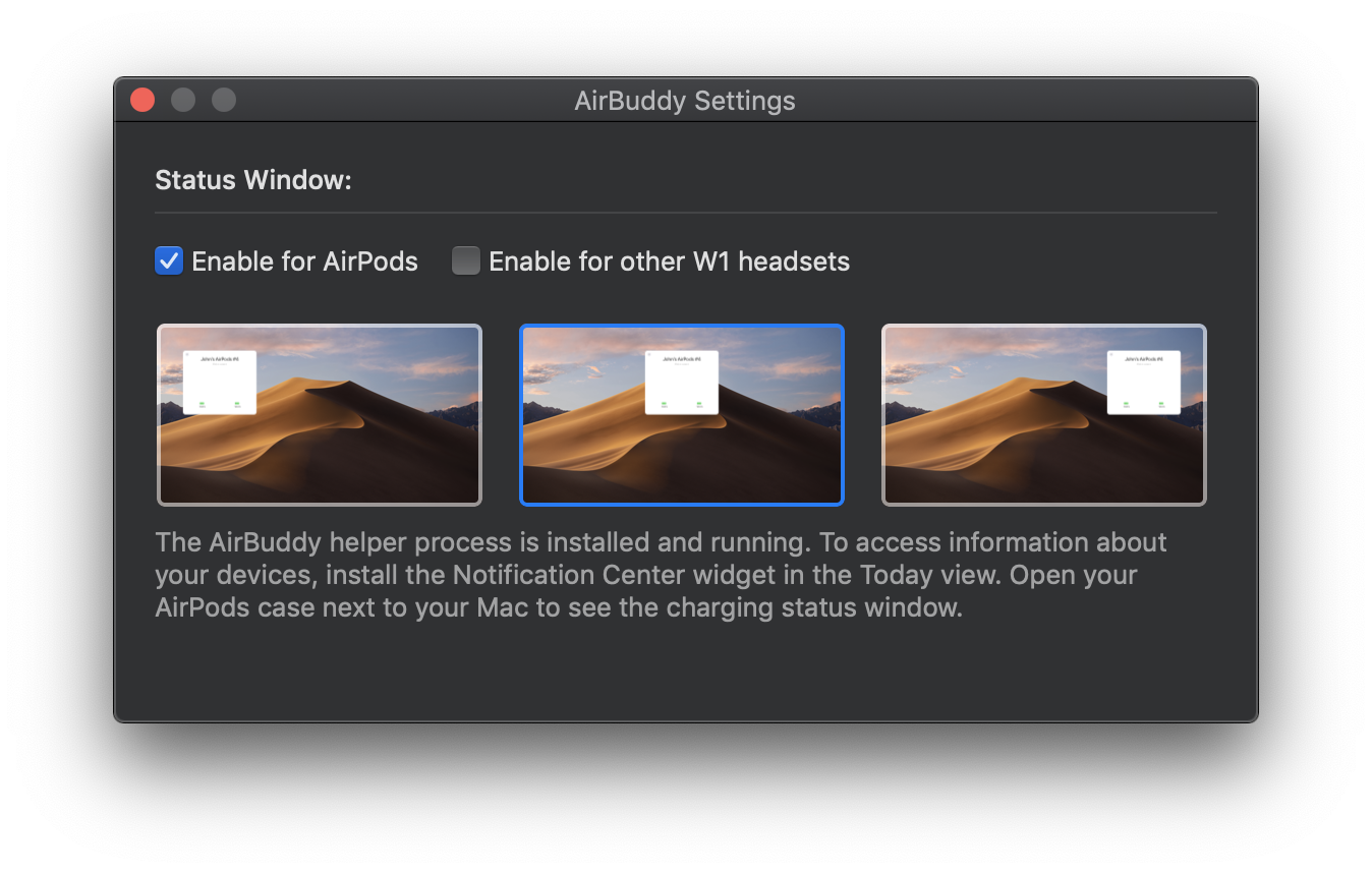 Viz popisek v aplikaci je jasný: „Open your AirPods case or turn on your Beats headphones next to your Mac to see the charging status window“. Takze pokazde, kdyz zapnu Beatsy a pripoji se k Macu automaticky, tak by stejne okno melo vyjet. Toto se nedeje.