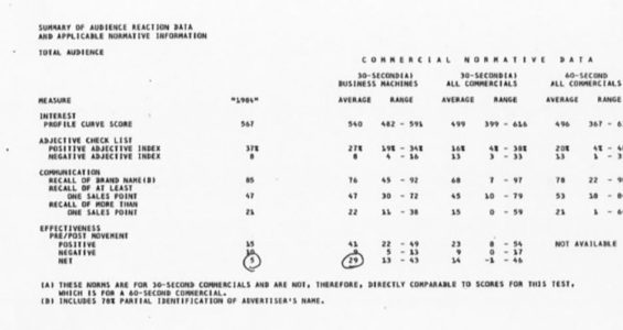 Jak takový předběžný test vůbec funguje? Reklamní agentura vybere určitou skupinu lidí, kteří danou reklamu zhlédnou a posléze ji dle určitých pravidel ohodnotí. Nejzákladnější otázkou takovýchto testů je jejich názor na značku před zhlédnutím reklamy a jaký jej mají poté. Většina třicetisekundových reklam v takovémto předběžném testu získá 29 kladných bodů. Podle bývalého zaměstnance Applu Freda Goldberga však byla reklama Applu zprvu naprostý propadák. Prý tehdy dokonce neviděl hůře hodnocený šedesátisekundový reklamní spot a z výsledků byl vskutku překvapen – reklama získala pouze 5 bodů, přičemž průměr byl 29.