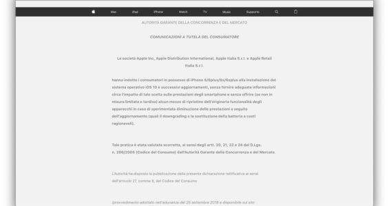 Přeložená zpráva zní takto: „Apple, Apple Distribution International, Apple Italia a Apple Retail Italia dovedli své spotřebitele telefonů iPhone 6, iPhone 6 Plus, iPhone 6S Plus a iPhone 6S k instalaci iOS 10 a dalších aktualizací, aniž by došlo k poskytnutí všech adekvátních informací o dopadu na výkonnost smartphonů a bez možnosti návratu zpět na starší verzi. Tímto krokem došlo k porušení článku 20, 21, 22 a 24 legislativního nařízení č. 206 italského zákona o spotřebitelském právu.“ Apple se tak de facto přiznal ke svému nekalému jednání, které se snažil ještě donedávna prakticky všude ve světě vyvracet a všemožně obhajovat. Jak se však zdá, nyní je mu již jasné, že „spadla klec“ a k jeho prohřešku je nutné postavit se čelem.