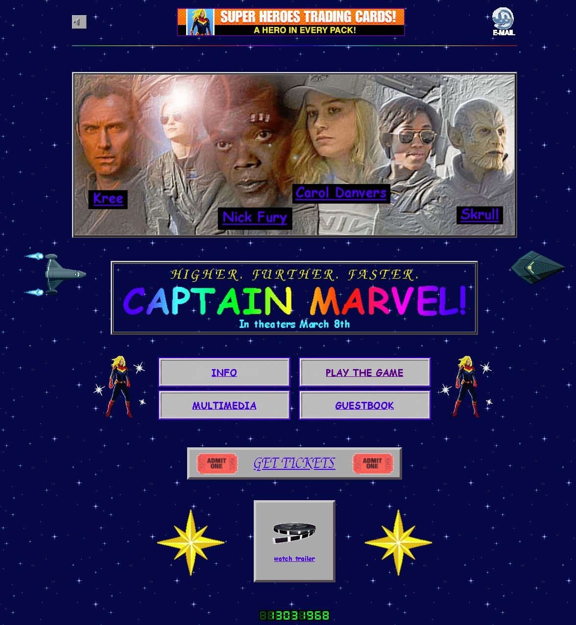 Ti z vás, kteří pamatují doby internetu 90. let, se budou nad webem Marvelu, který vytvořil při příležitosti nadcházejícího filmu Captain Marvel, rozplývat. Mladší z vás naopak budou nevěřícně kroutit hlavou, protože jim – pochopitelně – bude tato stránka připadat opravdu, slušně řečeno, hrozná. Ale takto skutečně většina stránek z té doby vypadala. Inu, skutečné retro, že?