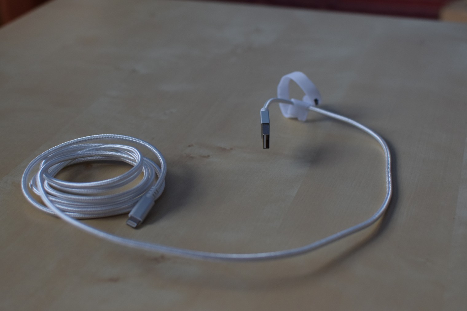 Velmi kladně hodnotím i schopnost kabelu držet tvar. Jasně, do pravého úhlu jej neohnete, ale bez problému z něj vytvarujete různé oblouky, díky kterým se kabel dokonale přizpůsobí například vašemu pracovnímu stolu a systematickému rozložení věcí, nebo chcete-li nepořádku, na něm, aniž by cokoliv důležitého překrýval. Pochvalu dále zaslouží i nenápadný proužek suchého zipu, kterým lze kabel stáhnout do smyčky a usnadnit si tak například jeho transport. Přeci jen, vozit metr či dva nesmotaného kabelu v brašně, ve které se krom něj skrývají například i sluchátka, klíče od auta a bytu nebo telefon není žádné terno a při lovení některé z výše zmíněných věcí vám může překážet. Suchý zip však tento problém vyřeší s grácií.