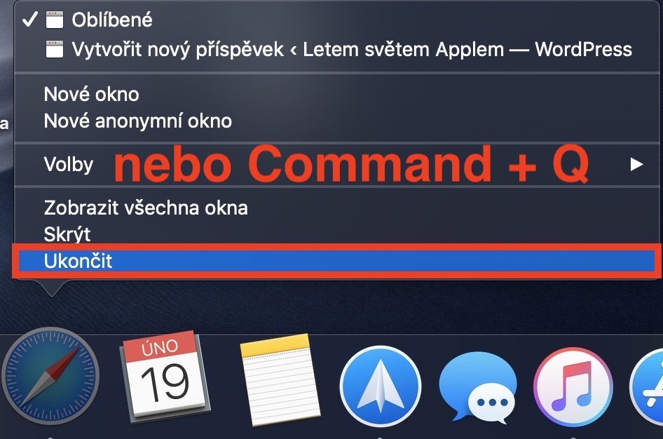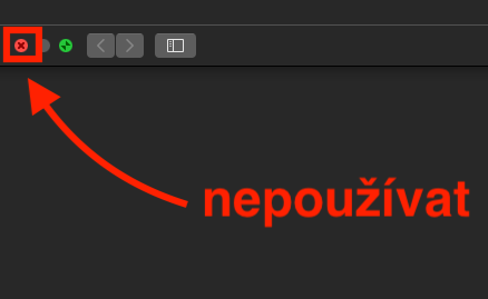 Druhý krok spočívá v tom, abychom si otevřeli aplikaci, u které chceme, aby se automaticky spouštěla v režimu celé obrazovky. Aplikaci spustíme a v levém horním rohu klikneme na zelené kolečko, které aplikaci převede do fullscreenu. Nyní nachází velice důležitý krok. Kdykoliv budete chtít okno zavřít, tak ho nesmíte zavřít pomocí červeného kolečka v levém horním rohu okna. K uzavření aplikace musíte používat klávesovou zkratku Command + Q a nebo na ikonu oné aplikace kliknout v Docku pravým tlačítkem a stisknout možnost Ukončit. Pokud tak neučiníte, tak se aplikace po opětovném spuštění opět zobrazí v malém okně.