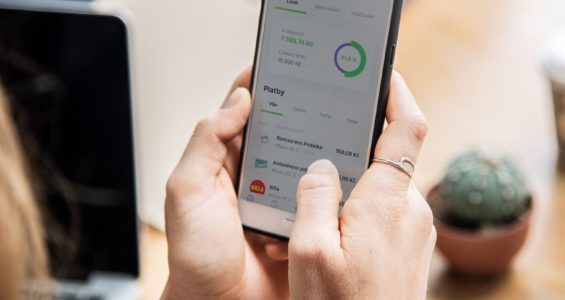person holding smartphone finance app