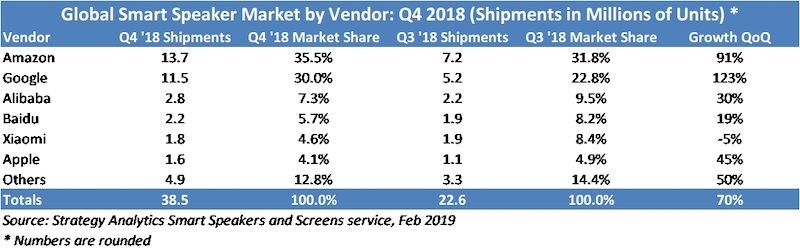 Ve stejném období prodali Amazon a Google o poznání více reproduktorů, a to konkrétně 13,7 a 11,5 milionů kusů, za což mohou obě společnosti děkovat především jejich nízké ceně. Apple HomePod je totiž o poznání dražší než jeho „kolegové“, kteří navíc nabízejí hned několik verzí. Některé nabídnou pouze úplné základy a ty nejlepší jsou zase srovnatelném s produktem od Applu, mnohdy však o poznání levnější.