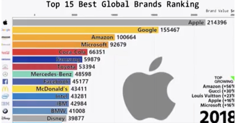 Na konci roku 2015 Microsoft svou hodnotou přeskakuje IBM a na přelomu roku 2016 a 2017 Microsoft sesazuje Coca-Colu ze třetího místa. Dále v roce 2017 prudce stoupá hodnota Amazonu, který se dostává na pátou příčku nejhodnotnějších společností světa. Dále se v roce 2018 na scéně objevuje Facebook, který taktéž zaznamenává nárůst na své ceně. Taktéž stále sílí Amazon, který se ke konci roku dostává na čtvrtou příčku a dokonce později přeskakuje i Microsoft, který se tehdy tyčil na třetí pozici.