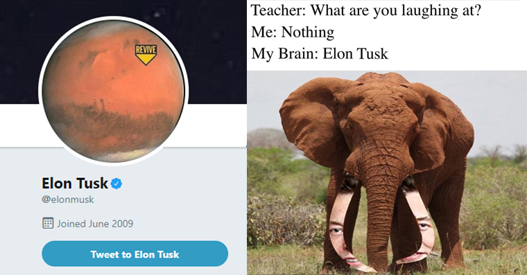 V noci z úterý na středu si Elon Musk na svém Twitteru změnil jméno na Elon Tusk, což v angličtině znamená sloní kel. Pokud tedy alespoň letmo sledujete internet a sociální sítě, tak jste si možná mohli všimnout vtipných meme obrázků, které si z Elona Muska dělají legraci. Musk si však z těchto obrázků, které se šíří po celém světě, nedělá vůbec velkou hlavu, ba naopak si dokáže udělat legraci sám ze sebe. To potvrzuje změnou jména a dokonce i některými dalšími příspěvky na svém Twitteru, na kterém mimo jiné právě některé meme sdílel. Mezi další směšné zkomoleniny patří například Elon Dusk, Elon Muskett, Elon Dust II, Elon Husk a další.