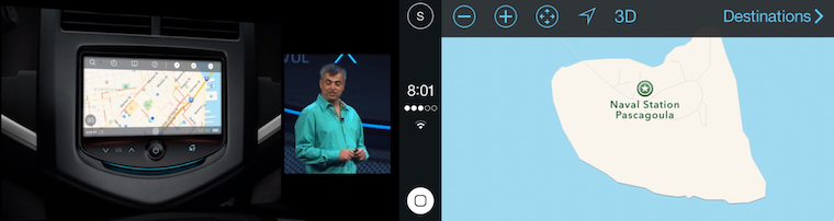 Psal se rok 2013, když Eddy Cue představil ukázku funkce v revolučním iOS 7 s názvem „iOS in the Car“. Na plátně na pódiu mohli účastníci konference vidět ukázky vozů, kompatibilních s iOS in the Car. „Co kdyby se iOS objevil na vestavěné obrazovce ve vašem voze?„, ptal se Cue sugestivně patnáct minut před koncem dvouhodinové Keynote, a následně ukázal, jak by to vypadalo, kdyby uživatel prostřednictvím tohoto rozhraní například provedl telefonní hovor. Nakonec se ale realita od představy, kterou si o iOS v autě mohli lidé udělat v roce 2013, značně lišila.