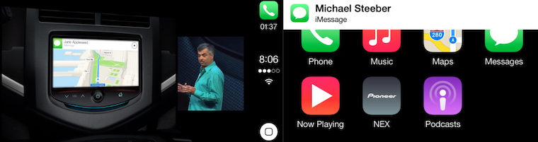 Odlišné rozhraní iOS in the Car poprvé odhalil vývojář Steven Troughton-Smith. Nová domovská obrazovka i vzhled aplikace Mapy naznačovaly, že došlo k obrovskému redesignu. Jen o několik týdnů později Apple oficiálně oznámil, že funkce iOS in the Car bude nahrazena kompaktnějším CarPlay. Příchod vozů s podporou této funkce byl přislíben na konec roku. K vylepšování a rozšíření CarPlay docházelo velmi pozvolna a celý proces se neobešel bez typických dětských nemocí, Apple ale na tomto poli odvedl vcelku dobrou práci. Výrobci příslušenství začali postupně nabízet možnost upgradu na CarPlay i u aut, vyrobených před rokem 2014, čímž se funkce stala o poznání dostupnější. CarPlay od dob svého vydání zaznamenal řadu důležitých změn a vylepšení, nedošlo ale k tak významnému designovému přepracování jako v roce 2013.