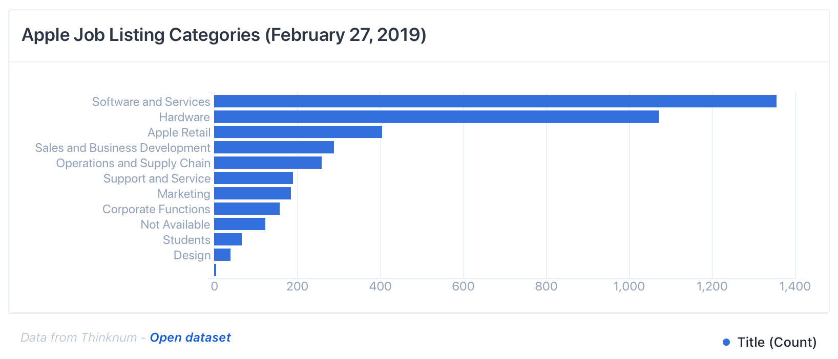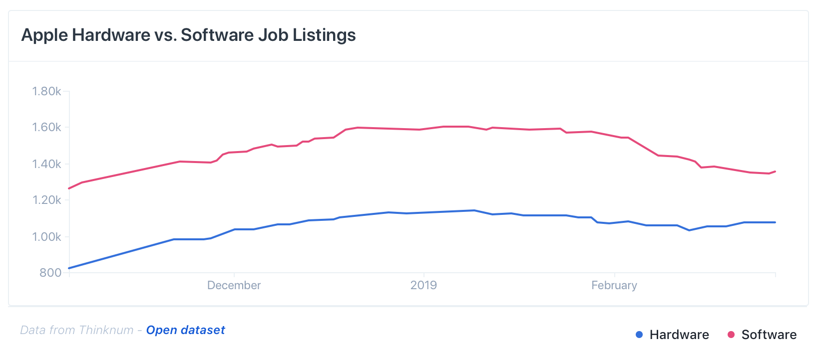 Joshua Fruhlinger, zakladatel Thinkum, se nechal slyšet, že jsou informace převzaty přímo od jablečné společnosti, konkrétně ze stránky, kde Apple práci nabízí. V grafech tak nejsou započítány nabídky práce na webových stránkách třetí strany. Je dokonce dost možné, že softwarové inženýrství dosáhlo na první stupínek po více, než dvou letech. Thinkum totiž začalo sledovat nabídky práce od Applu až od roku 2016, tudíž je pravděpodobné, že si software vysloužil své prvenství po několika letech, ne-li poprvé v historii.