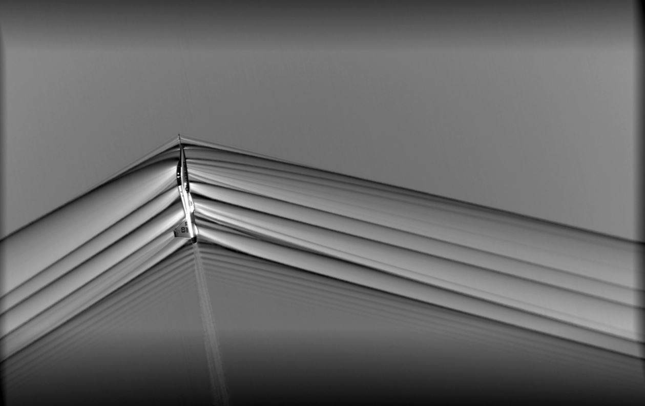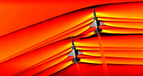 NASA zveřejnila nádherné snímky znázorňující protínání nadzvukových vln stíhačkami. Jedná se o první podobné snímky, které kdy byly „vyfoceny“, a to díky nově vyvinutému přístupu ke zobrazování nadzvukových vln v reálném čase. Na snímcích vidíme dvě stíhačky, které vyfotil přístroj NASA B-200 King Air letící 600 metrů nad nimi.