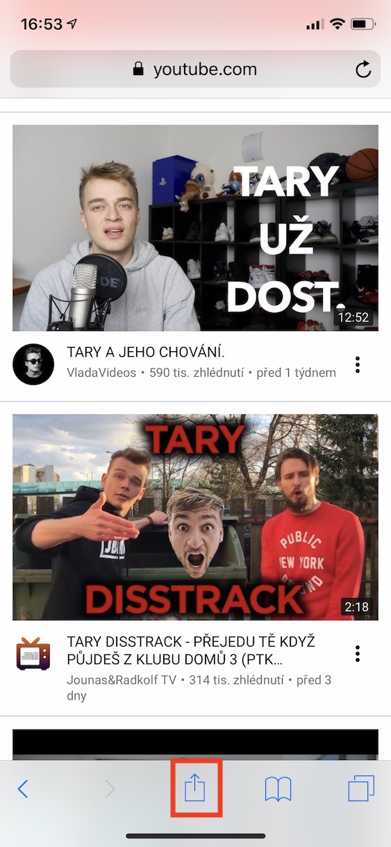 Úplnou verzi stránky lze zobrazit také pomocí menu. Na webové stránce, u které chcete zobrazit úplnou verzi, klikněte v dolním menu uprostřed na tlačítko sdílení (ikona čtverečku se šipkou). Poté se zobrazí rozhraní, ve kterém vás zajímá spodní menu, ve kterém se přesuňte doprava a zvolte možnost Úplná verze stránky.