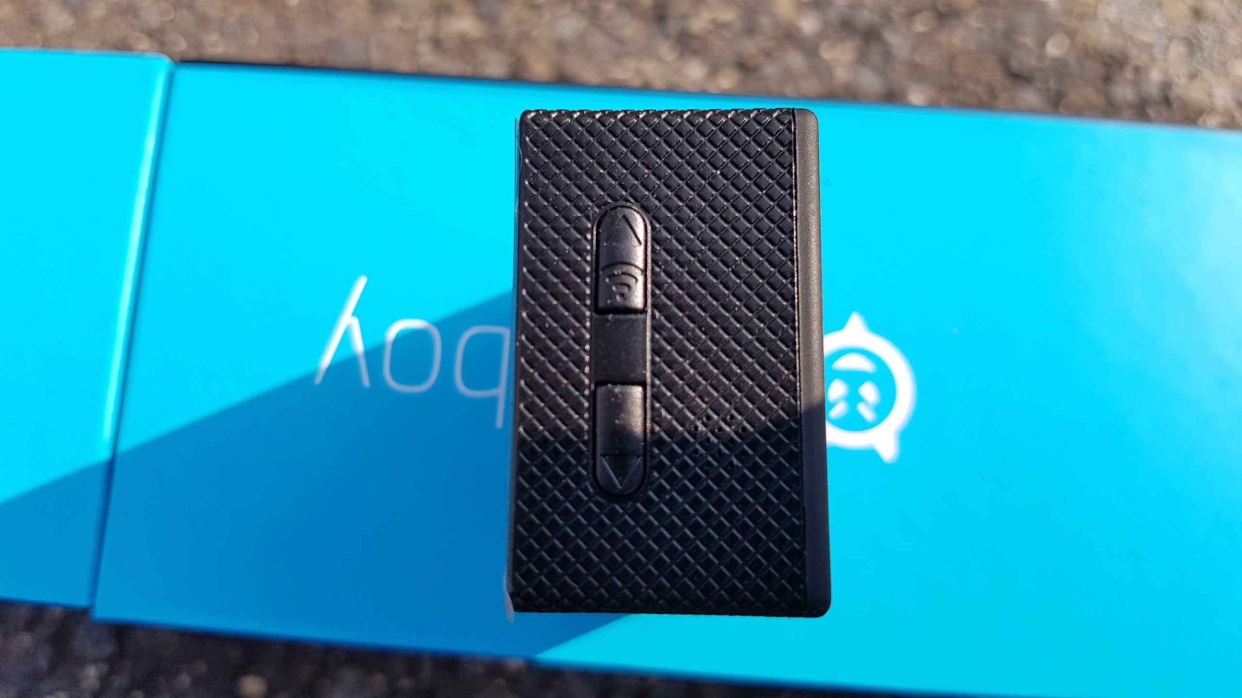 Nyní k akční kameře samotné. Jedná se o skutečně drobné zařízení s minimalistickým designem. Prakticky dokonalý černý kvádr ruší jen vystouplý 170° objektiv na přední straně, kde je rovněž umístěno tlačítko pro zapnutí/vypnutí akční kamery a pro přepínání mezi módy fotoaparát, kamera, nastavení a možnosti prohlížet si pořízené záběry a fotografie. Na zadní se nachází 2“ LCD displej. Na levé straně nalezneme slot na microSD kartu a microUSB s microHDMI portem. Na spodní straně je baterie, na vrcholu byste pak nemohli čekat nic jiného než tlačítko pro fotografování/natáčení/potvrzení volby. Na pravé části kamerky jsou k vidění dvě tlačítka, která mohou sloužit pro zoomování nebo pro pohyb v menu nastavení. Dlouhý stisk akčního tlačítka rovněž zapne Wi-Fi, která slouží k připojení k telefonu.