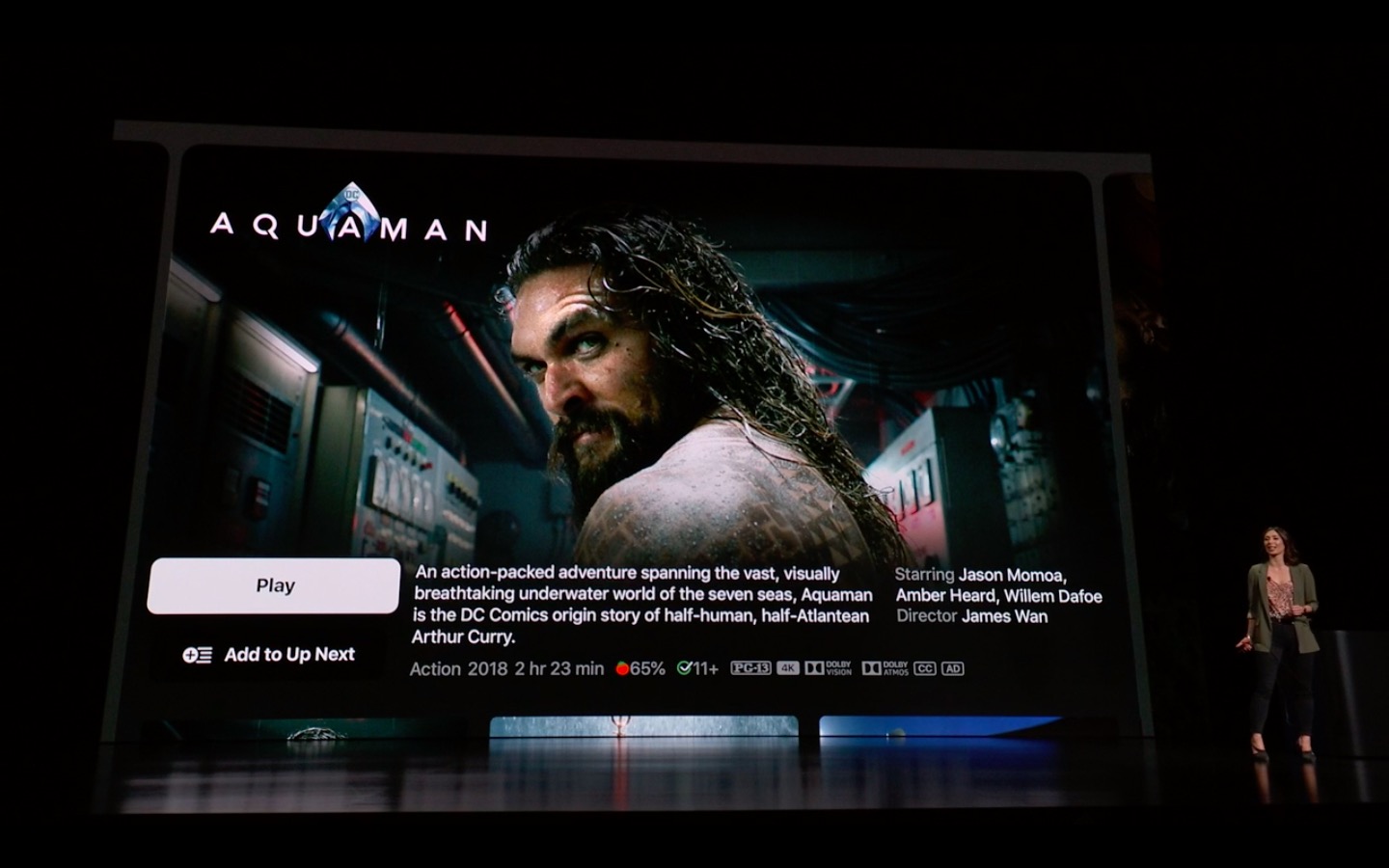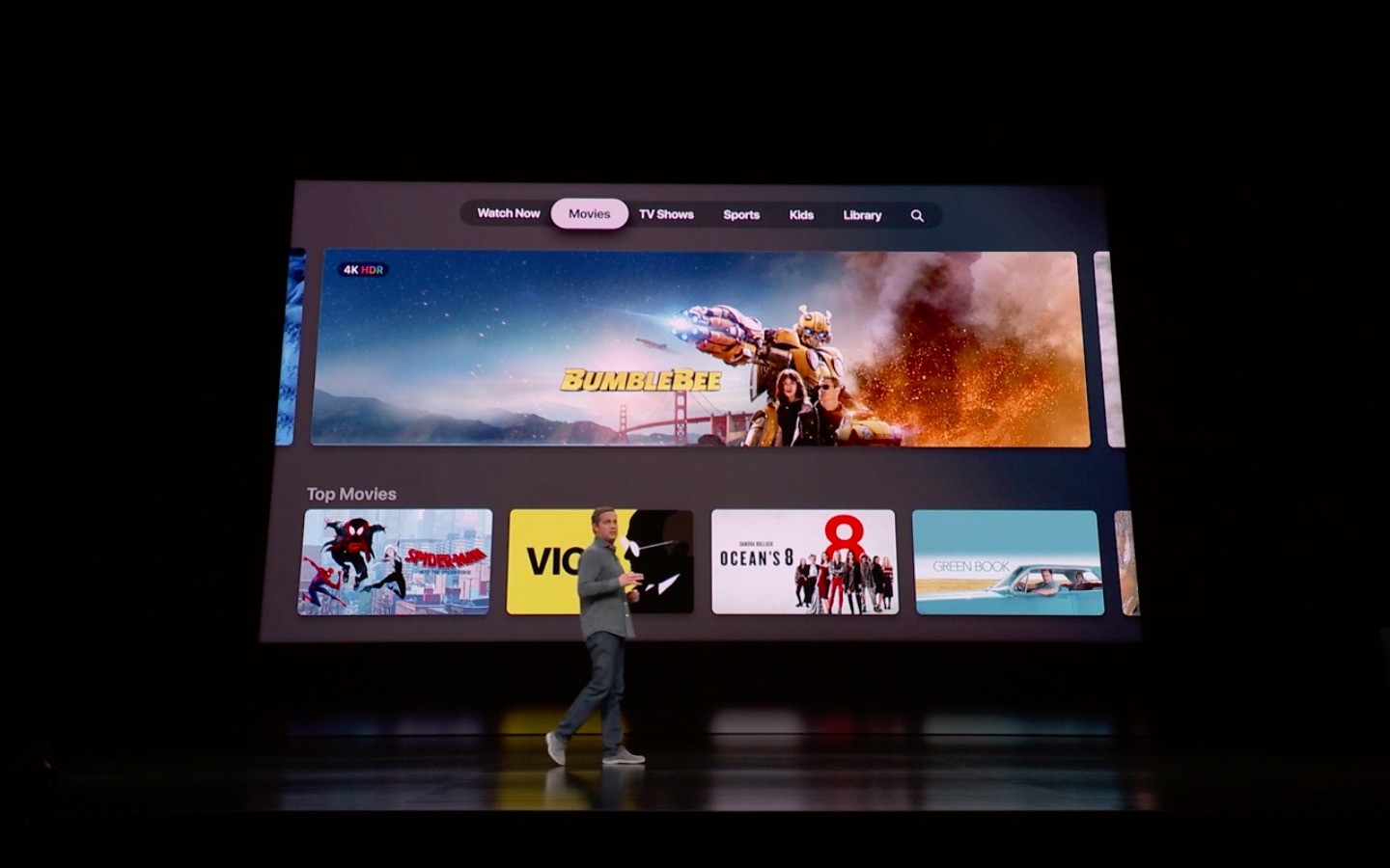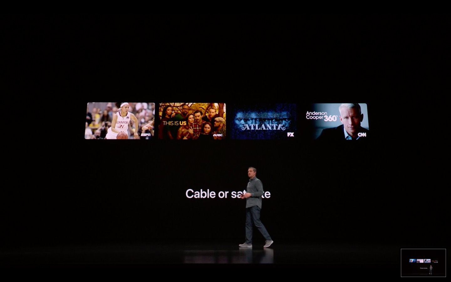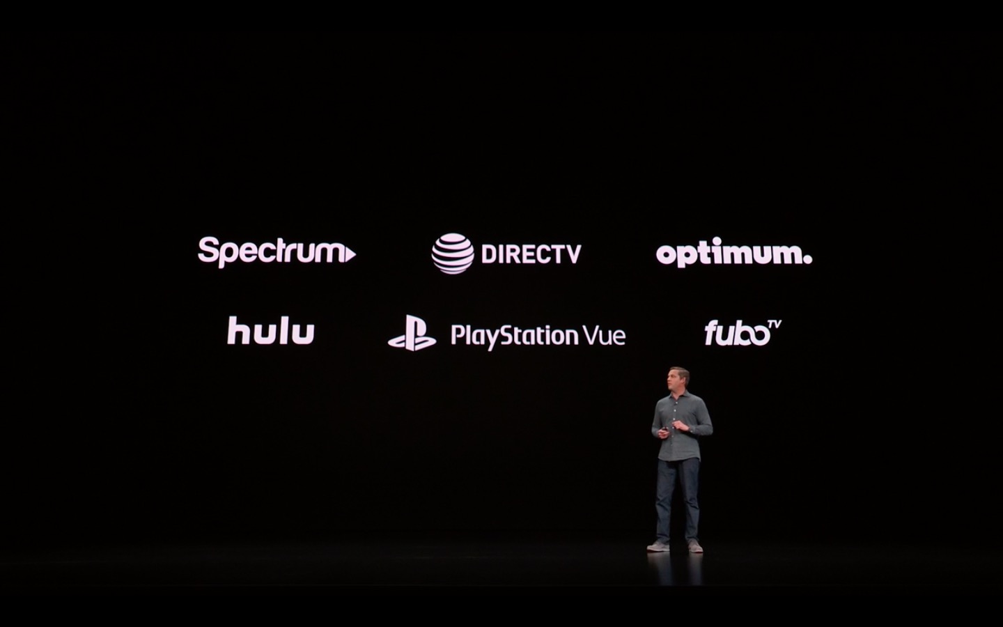 Šéf Applu začal u Apple TV slovy o tom, jak lidé televizi milují a jak je pro ně její obsah důležitý. Poté už plynule přešel na představení zcela nové aplikace TV, která je dostupná na všech platformách. V této aplikaci naleznete Spectrum, DirectTV, Optimum, Hulu, Playstation Vue, Fubo. Zaplatit můžete jen za to, co opravdu chcete sledovat. Pořady si navíc můžete stahovat, díky čemuž tak možné je sledovat i offline. Vše je navíc dostupné v té nejlepší možné kvalitě, která je jen možná.