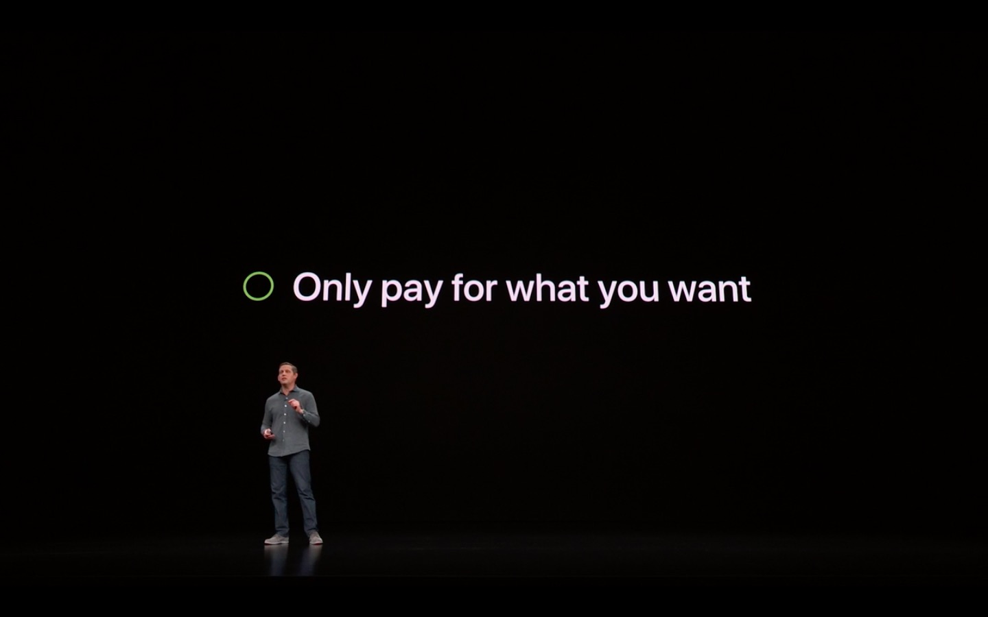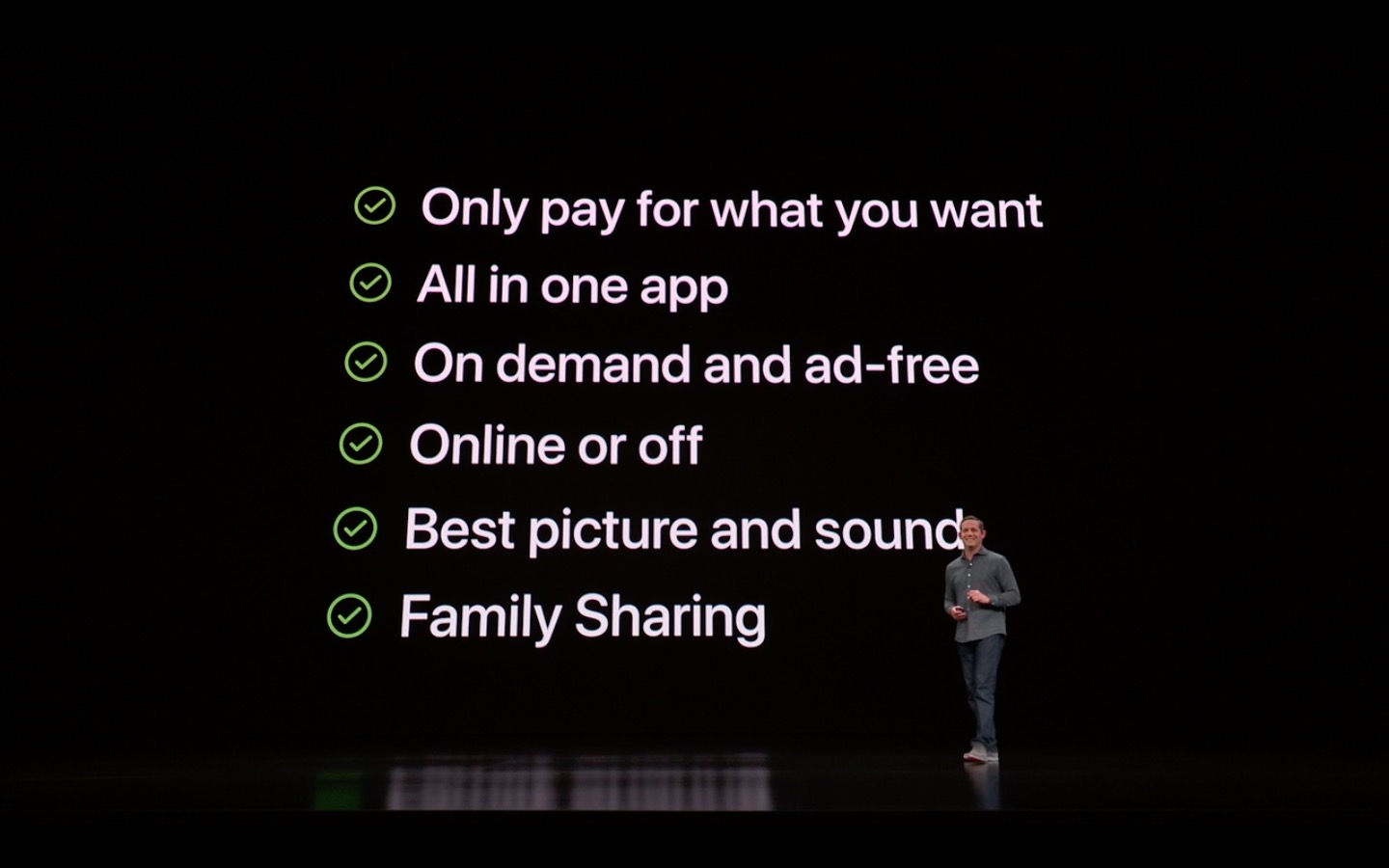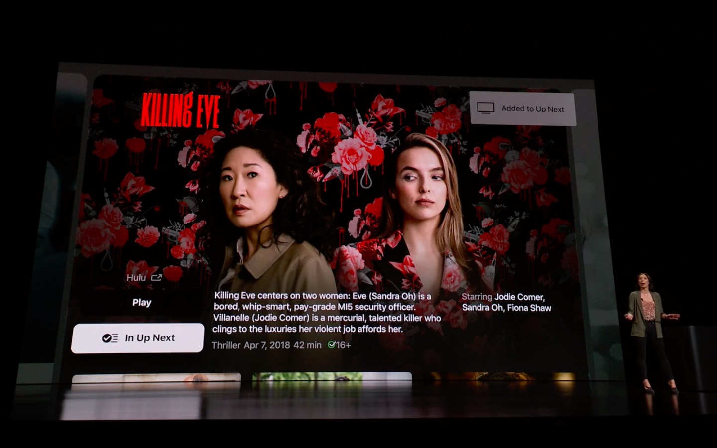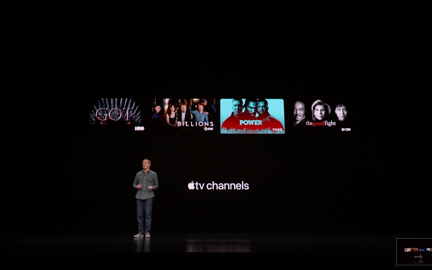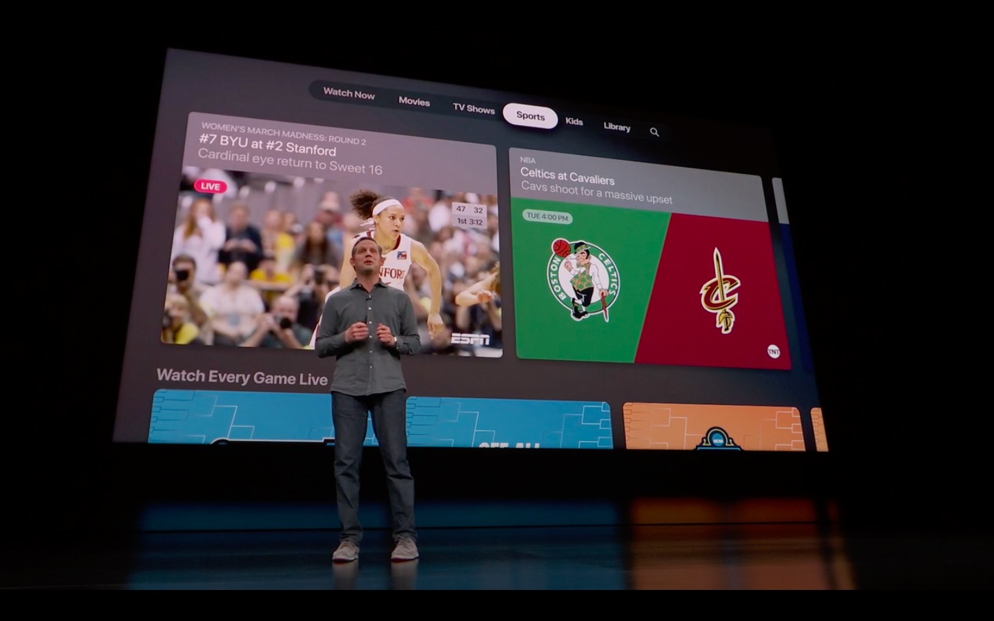 Šéf Applu začal u Apple TV slovy o tom, jak lidé televizi milují a jak je pro ně její obsah důležitý. Poté už plynule přešel na představení zcela nové aplikace TV, která je dostupná na všech platformách. V této aplikaci naleznete Spectrum, DirectTV, Optimum, Hulu, Playstation Vue, Fubo. Zaplatit můžete jen za to, co opravdu chcete sledovat. Pořady si navíc můžete stahovat, díky čemuž tak možné je sledovat i offline. Vše je navíc dostupné v té nejlepší možné kvalitě, která je jen možná.